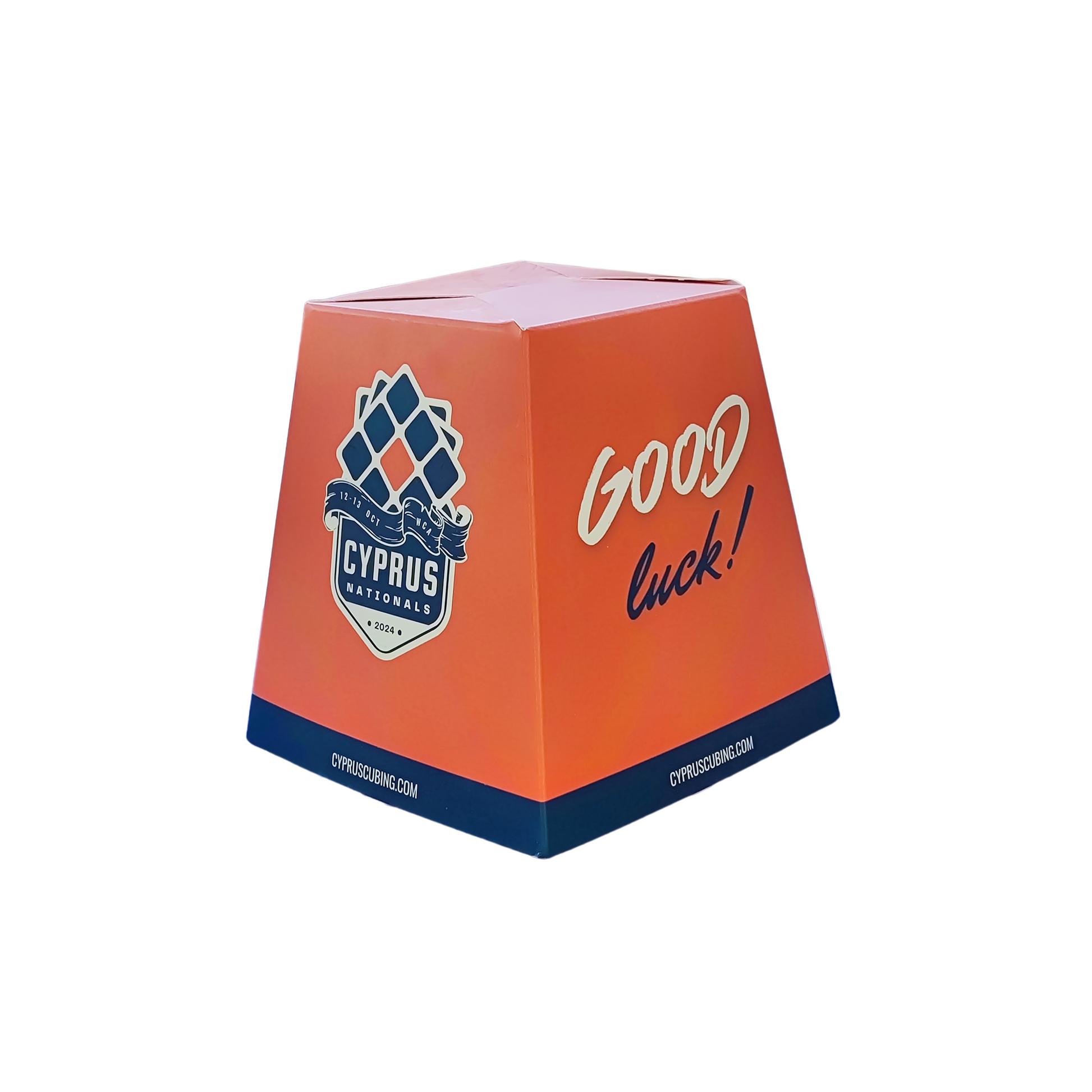 This cubing cover, designed specifically for Cyprus Nationals 2024, is a vibrant and functional accessory for competitors. With its bold orange color and the event's logo displayed prominently, it adds a professional and motivational touch to the competition tables. The "Good luck!" message on the side brings an encouraging vibe for participants as they prepare for their solves. Made from durable material, this cover helps keep cubes protected and hidden during events, ensuring fairness and adding to the excitement. It's a perfect blend of style, utility, and event pride for all cubers.
