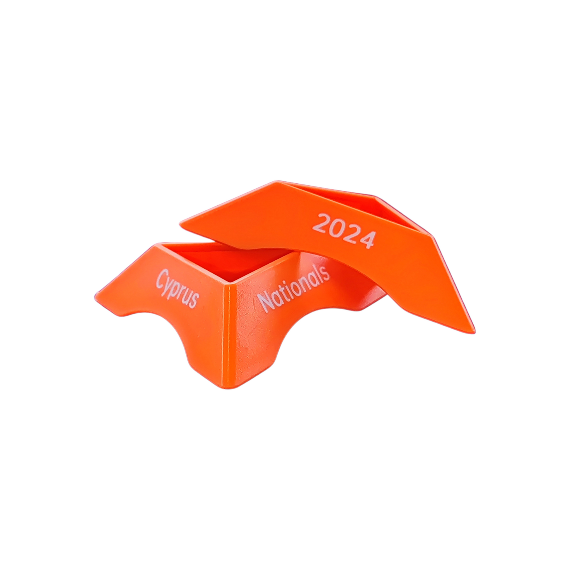 These custom-designed cubing stands for Cyprus Nationals 2024 are the perfect accessory for any speedcuber. Made in a vibrant orange, they prominently feature the event name and year, adding a personalized touch that commemorates the competition. These stands offer stability for your cubes when not in use, ensuring they remain displayed with pride while protecting them from damage. Lightweight yet sturdy, these stands are an ideal keepsake for competitors and attendees, serving as both a functional item and a stylish reminder of the event.