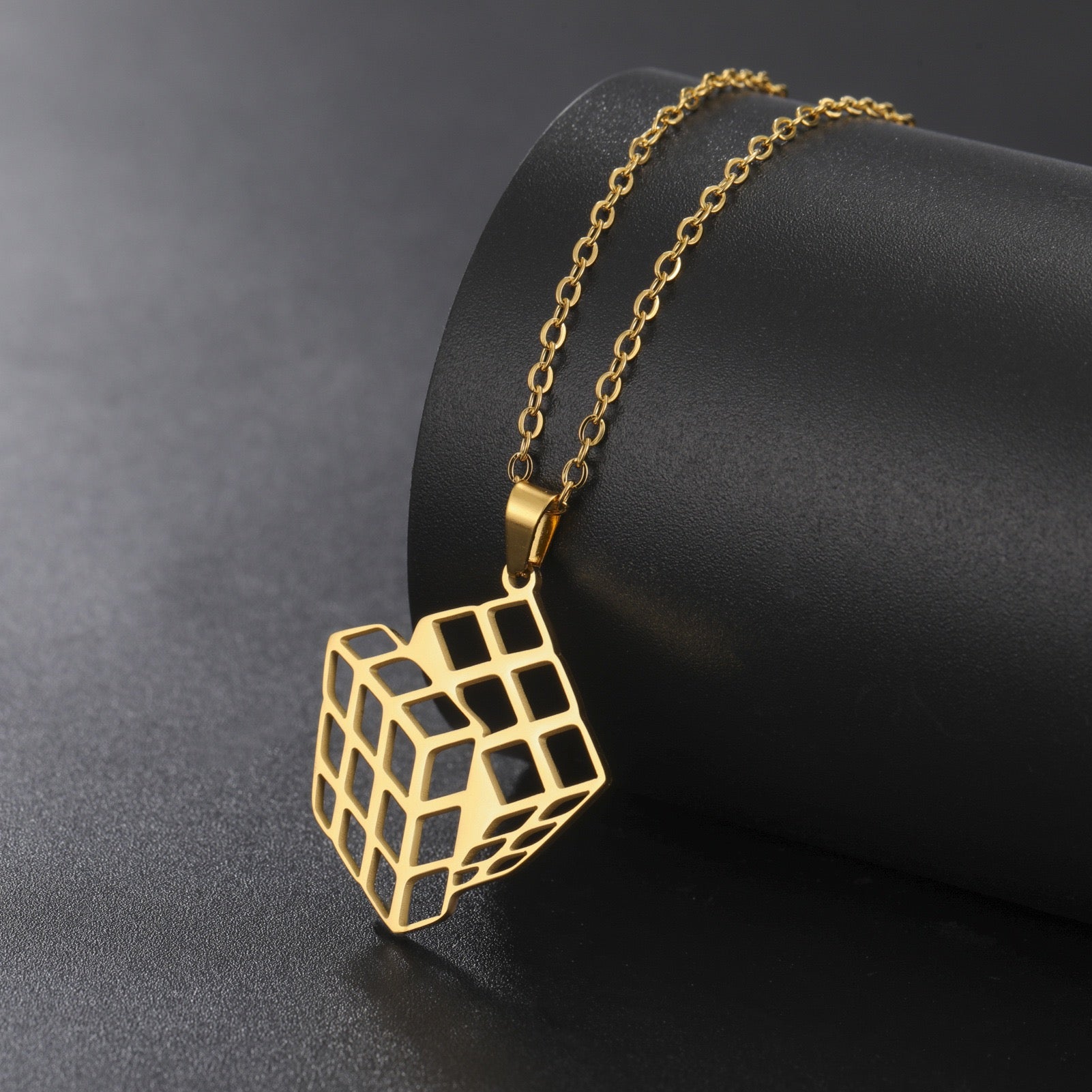 The Stainless Steel Hollow Cube Pendant Necklace in 18K gold plated finish is a bold and elegant way to show your love for cubing. Featuring a detailed wireframe 3x3 cube pendant, this necklace combines a sleek geometric look with a bright gold tone. It's lightweight, eye-catching, and built to last. Whether you're dressing up or keeping it casual, it's a stylish statement for any puzzle fan.